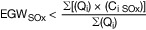 EGW_(SOx): berechneter Emissionsgrenzwert für Schwefeldioxid und Schwefeltrioxid, angegeben als Schwefeldioxid, in mg/m³ für den Tagesmittelwert,