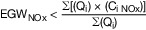 EGW_(NOx): berechneter Emissionsgrenzwert für Stickstoffmonoxid und Stickstoffdioxid, angegeben als Stickstoffdioxid, in mg/m³ für den Tagesmittelwert,