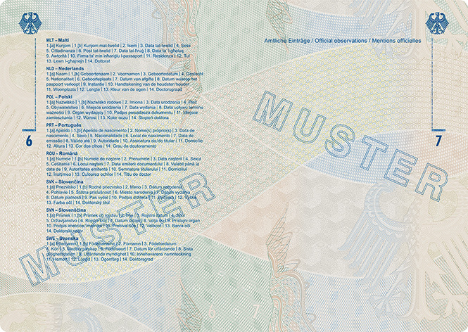 – Passkartendatenseite und Passbuchinnenseite 1 –