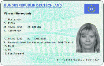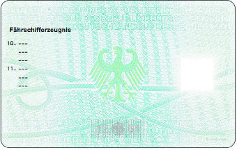 Visuelle Merkmale des Befähigungszeugnisses: Grundfarbe hellblau, nach ISO/IEC 7810