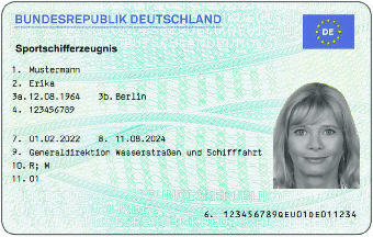 Visuelle Merkmale des Befähigungszeugnisses: Grundfarbe hellblau, nach ISO/IEC 7810