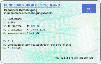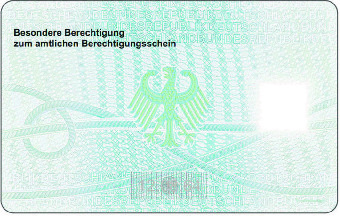 Muster für die besondere Berechtigung als gesonderte Karte bei amtlichem Berechtigungsschein