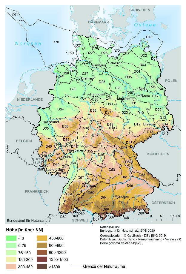 Naturräume in Deutschland (Bundesamt für Naturschutz 2011, nach Ssymank 1994)