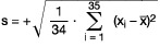 - Die Standardabweichung der Stichprobe ist:
