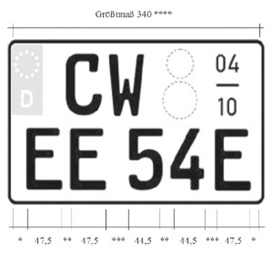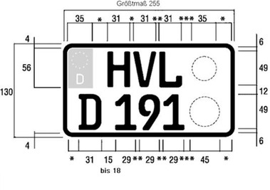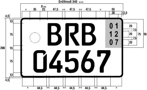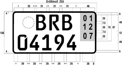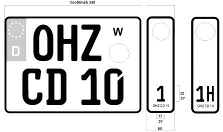 - Die übrigen Abmessungen entsprechen denen der Kraftradkennzeichen.