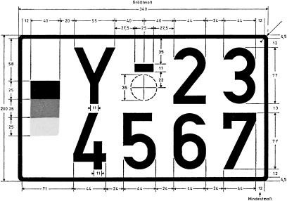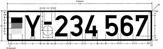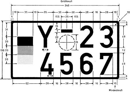 - Die übrigen Abmessungen entsprechen denen der Allgemeinen Kennzeichen.