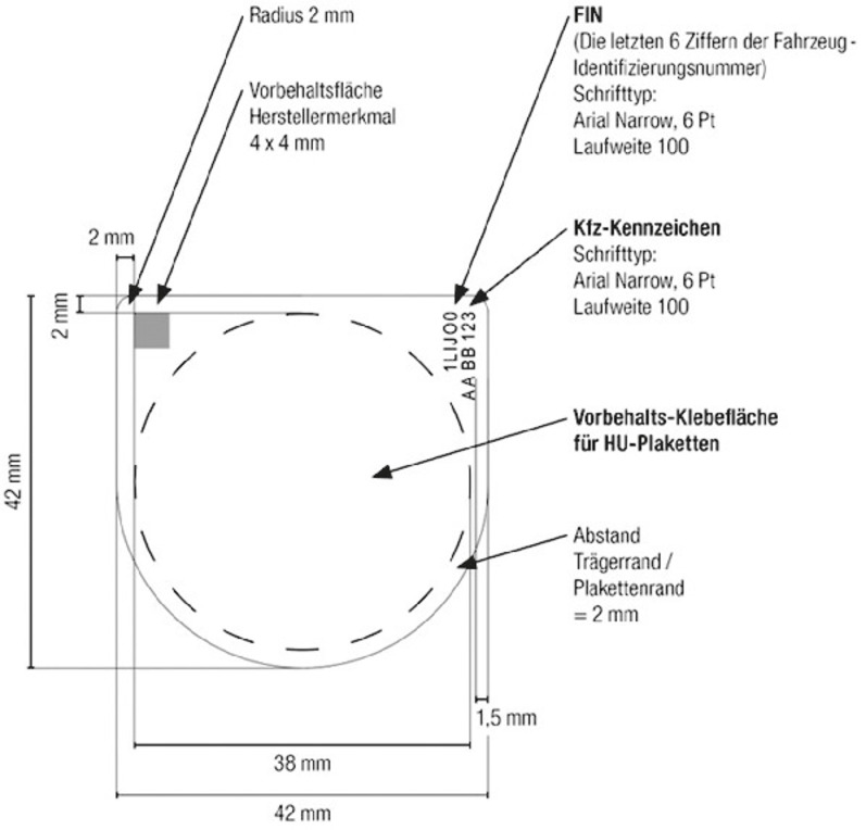 | Abbildung 5: Bemaßung des HU-Plakettenträgers |
