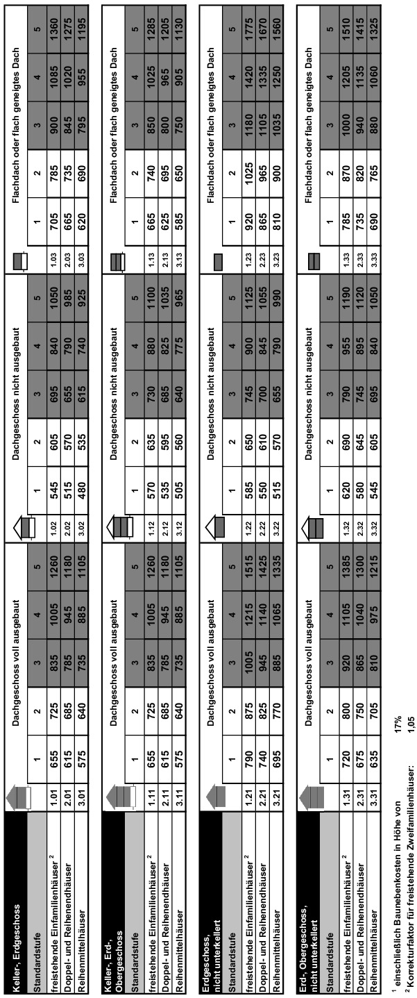 (2) Die Kostenkennwerte der Normalherstellungskosten 2010 nach Nummer II beziehen sich auf eine Art der baulichen Anlage (Gebäudeart) unter Berücksichtigung einer Standardstufe. Die Zuordnung des Wertermittlungsobjekts zu einer Gebäudeart erfolgt aufgrund seiner Nutzung. Die Zuordnung zu einer Standardstufe erfolgt nach Nummer III aufgrund seiner Standardmerkmale; dabei sind zur Ermittlung eines zutreffenden Kostenkennwerts alle wertrelevanten Standardmerkmale des Wertermittlungsobjekts sachverständig einzustufen, auch wenn sie nicht in Nummer III beschrieben sind.