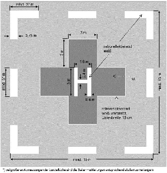 Die Mindestgröße der Start- und Landefläche beträgt 15 Meter mal 15 Meter; der Durchmesser einer kreisrunden Start- und Landefläche beträgt 15 Meter. Die Start- und Landefläche ist eben und frei von Objekten; ihre Neigung darf 5 Prozent nicht überschreiten. Die Tragfähigkeit der Start- und Landefläche muss der maximalen Startmasse des vom Luftfahrtunternehmen an der Landestelle konkret eingesetzten Hubschraubers entsprechen.
