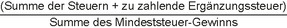 5Steuern aufgrund einer anerkannten nationalen Ergänzungssteuer sind bei der Berechnung des effektiven Steuersatzes zu berücksichtigen, soweit diese im Rahmen der gemischten Hinzurechnungsbesteuerung nach der gleichen Maßgabe wie alle anderen erfassten Steuern anrechenbar sind.