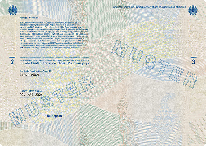 | Reisepass (48 Seiten) | Passbuchinnenseiten 2 und 3 |