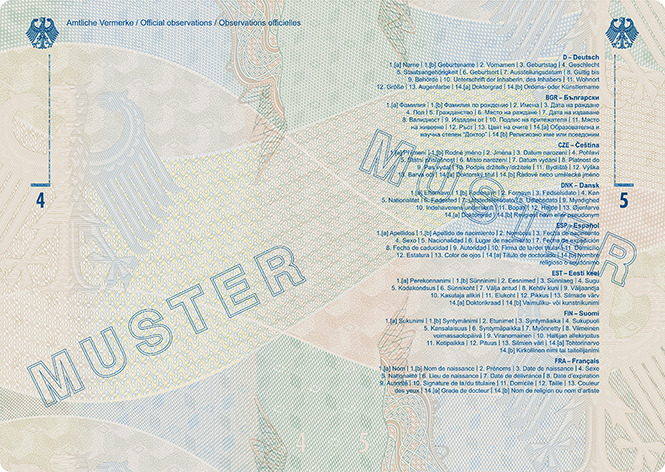 | Reisepass (48 Seiten) | Buchseiten 4 und 5 |