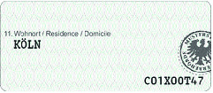 Muster des Aufklebers zur Änderung des Wohnortes