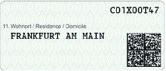 Muster des Aufklebers zur Änderung des Wohnortes nach elektronischer Anmeldung nach § 23a des Bundesmeldegesetzes