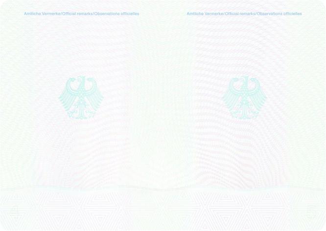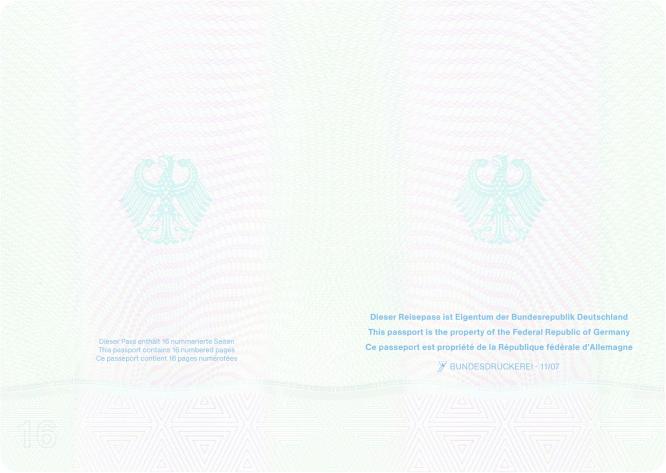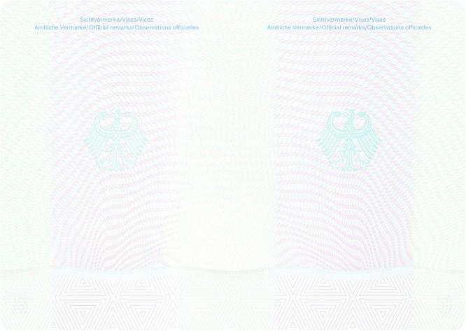 | Die Seiten 1 bis 16 und die hintere Passdecke werden am unteren Rand mit der Dokumentennummer versehen | |