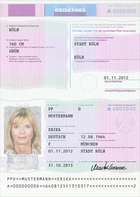 | Vorläufiger Reisepass | Aufkleber Personaldaten |