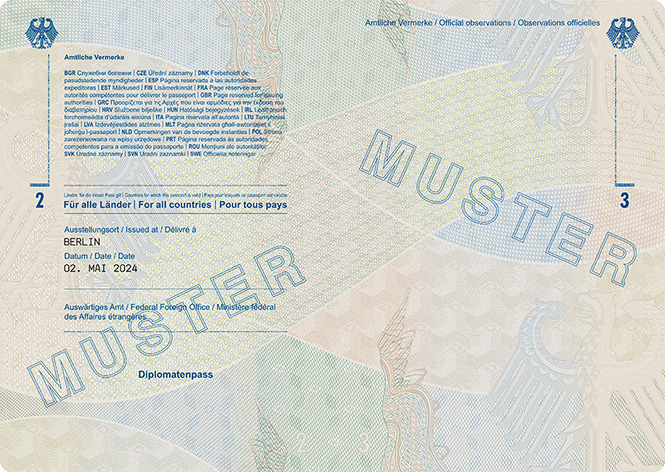 | Diplomatenpass | Buchseiten 2 und 3 |