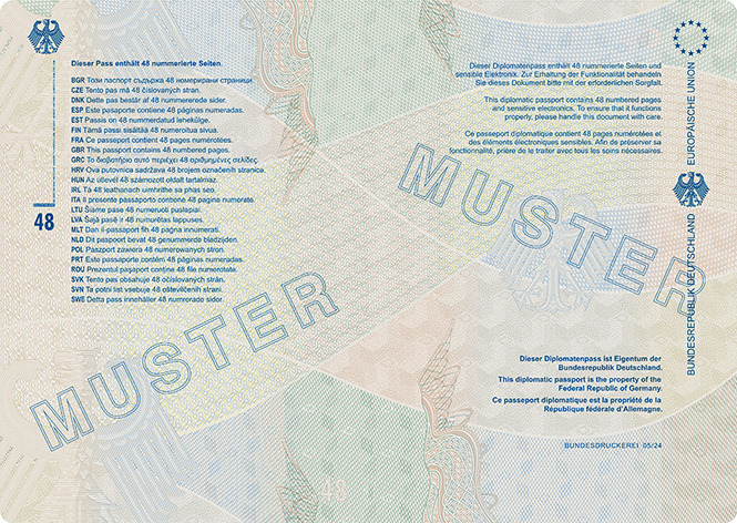 | Diplomatenpass | Passkartendatenseite und Buchseite 1 |