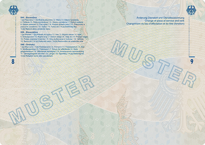 | Diplomatenpass | Buchseiten 8 und 9 |