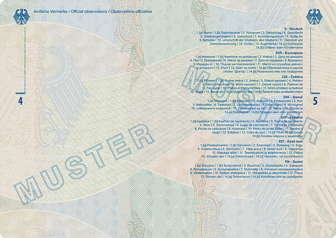 | Diplomatenpass | Buchseiten 4 und 5 |