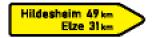 | 70 | Erläuterung jedoch nur mit Entfernungsangabe auf einem Zusatzzeichen und bei Bedarf mit Zielangabe auf einem zusätzlichen Schild über dem Zeichen. Soll die Ankündigung nur für bestimmte Verkehrsarten gelten, sind diese auf einem Zusatzzeichen über dem Zeichen angegeben. | |
